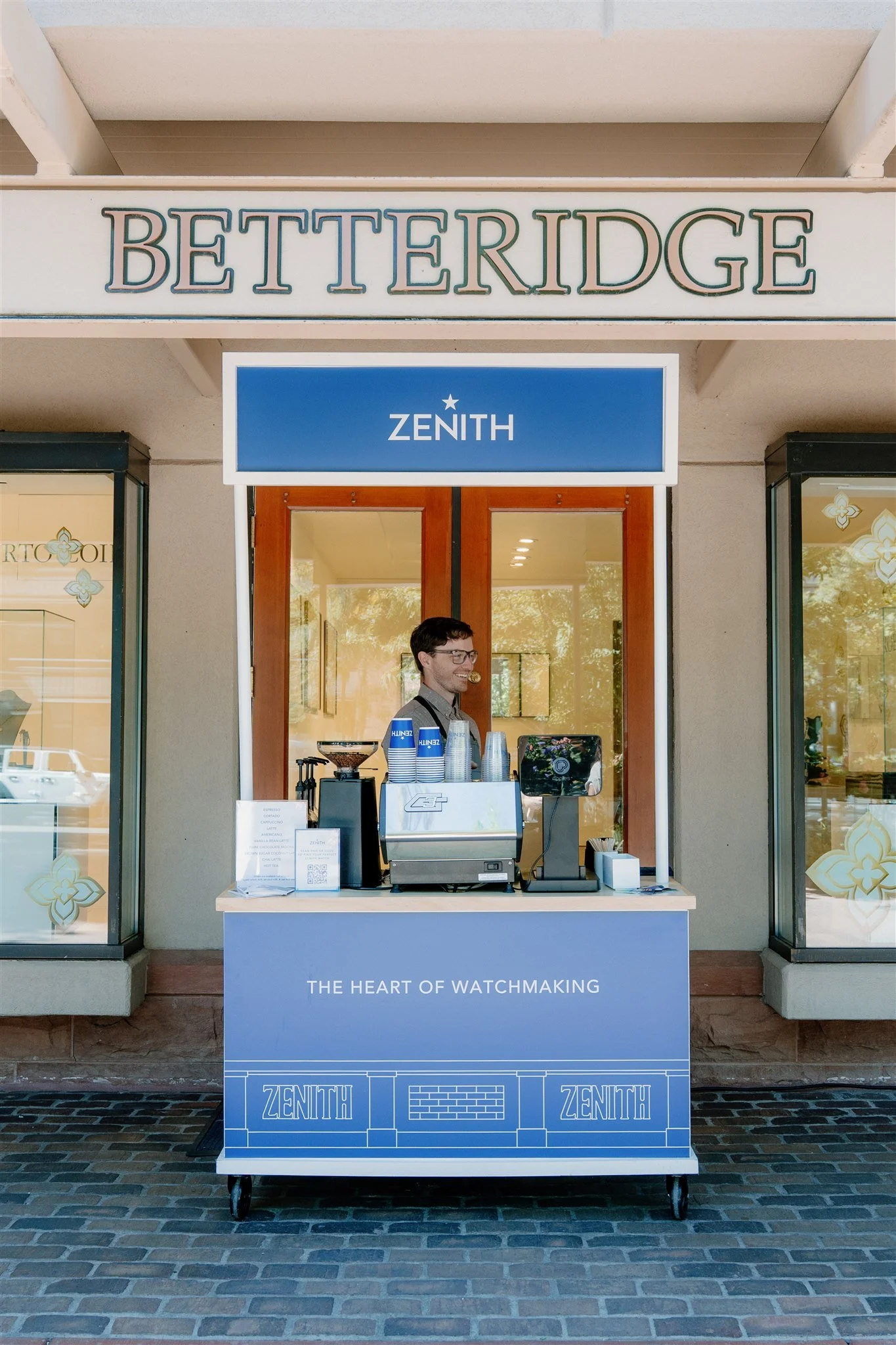 About a month before Aspen Watch Week, the ZENITH team reached out looking for a way to stand out during one of the busiest luxury retail weeks of the year. Together with their graphic designers, we built a fully branded espresso experience designed to feel unmistakably ZENITH.